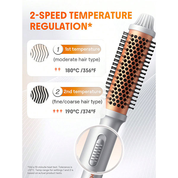 برس پیچ حرارتی شیگلم دارای دو سطح دمایی مختلف است که برای انواع مختلف مو مناسب است. سطح دمایی پایینتر برای موهای نازک و حساس و سطح دمایی بالاتر برای موهای ضخیم و مقاوم طراحی شده است.